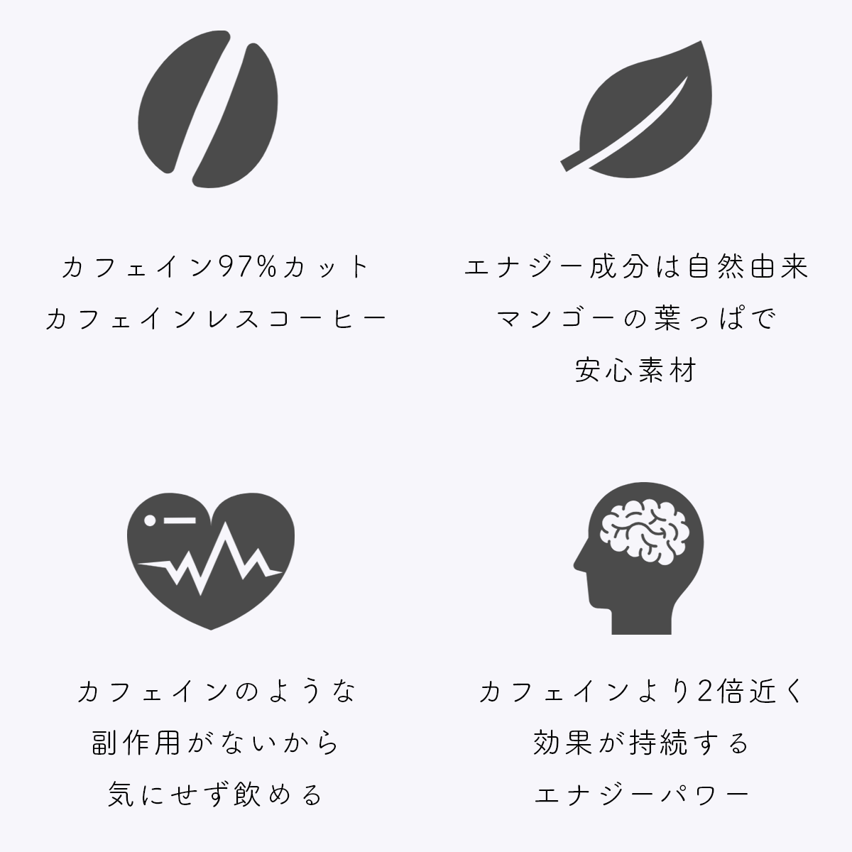 そんな女性のために、カフェインを97%カットしつつ、注意力や作業精度の向上に効果があるマンゴーの葉っぱを配合。