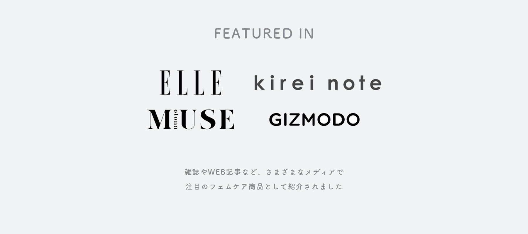 雑誌やWEB記事など、さまざまなメディアで注目のフェムケア商品として紹介していただきました。