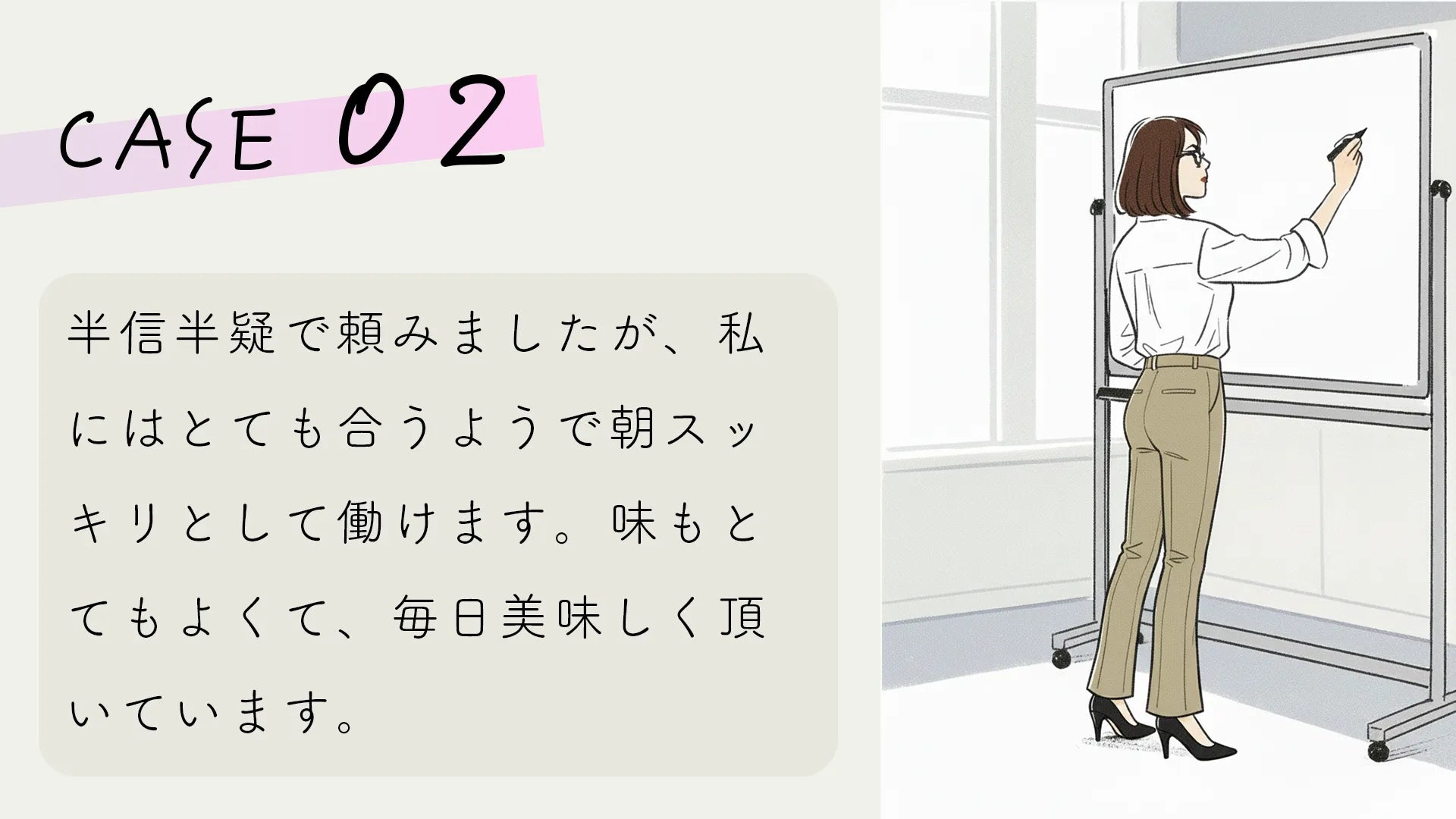 朝一番の仕事から、全力で立ち向かうためにシャキッと一口。