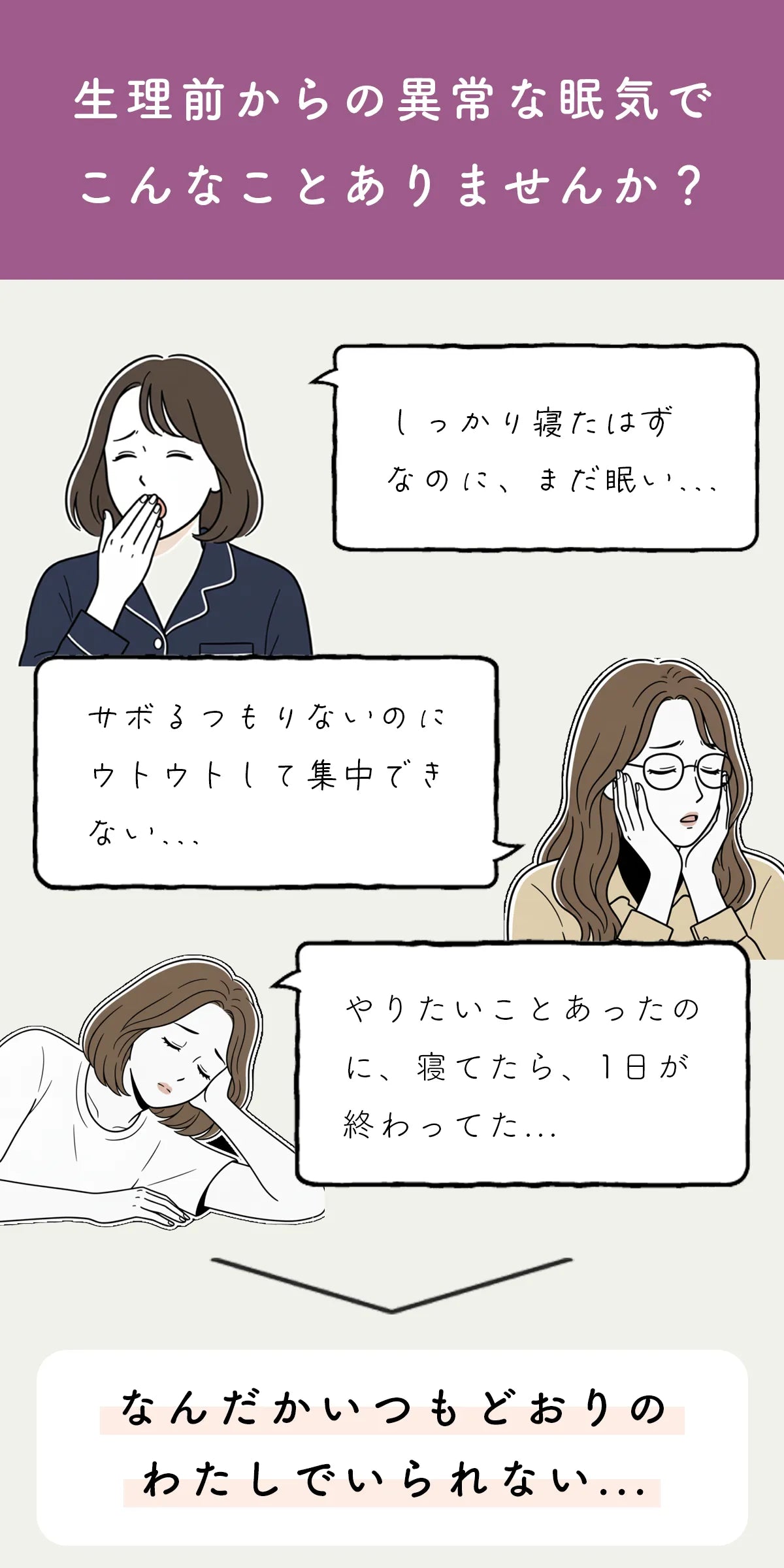 不安で憂鬱で仕方ない時期が毎月来るということ自体にしんどい気持ちになりますが、お守りがひとつ増えたような気持ちになりました。まっすぐ歩けないレベルで眠気が酷いにも関わらず仕事が外勤営業職のため、非常に助かります。