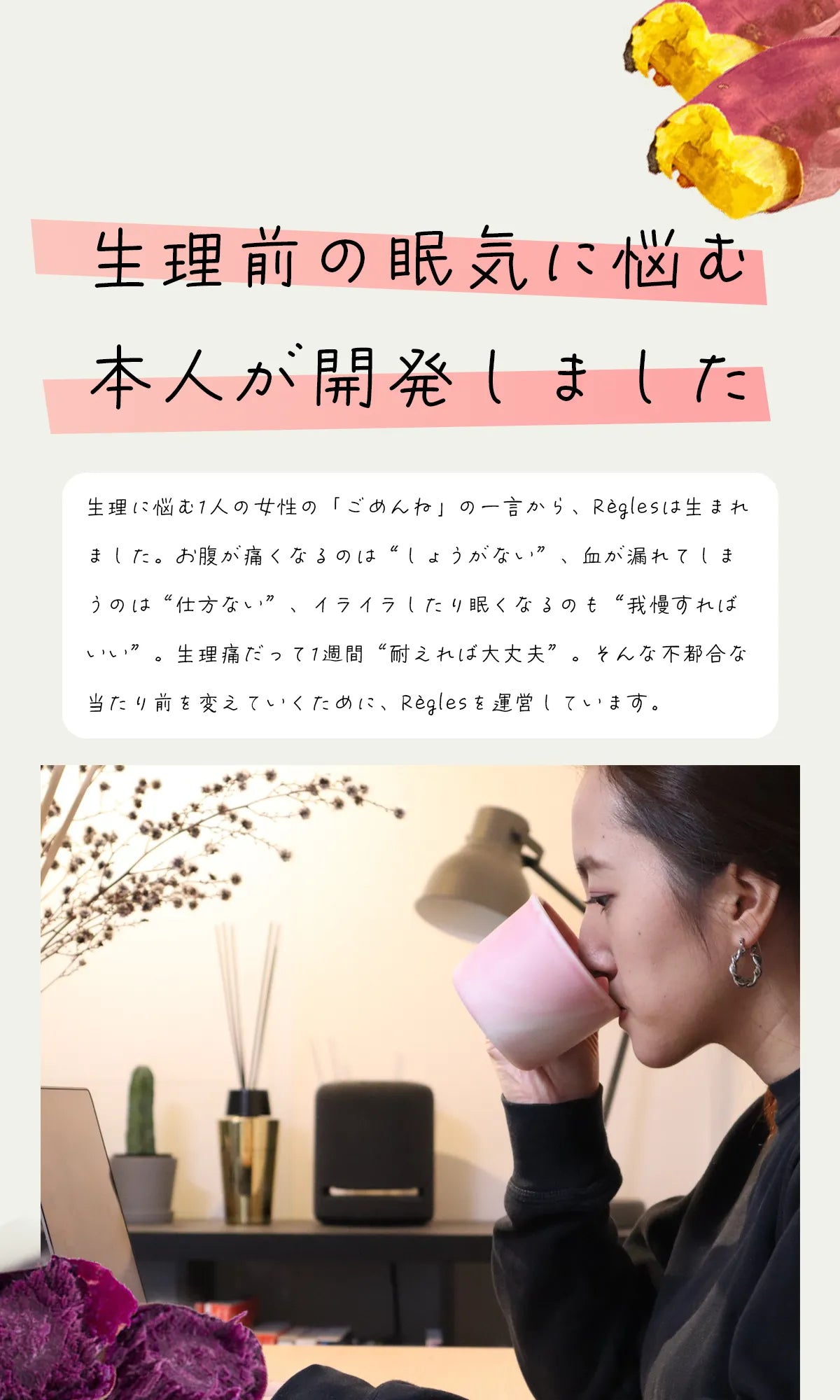 Règlesは、生理で辛そうにしているパートナーの悩みを解消してあげたいという単純な想いから始まりました。